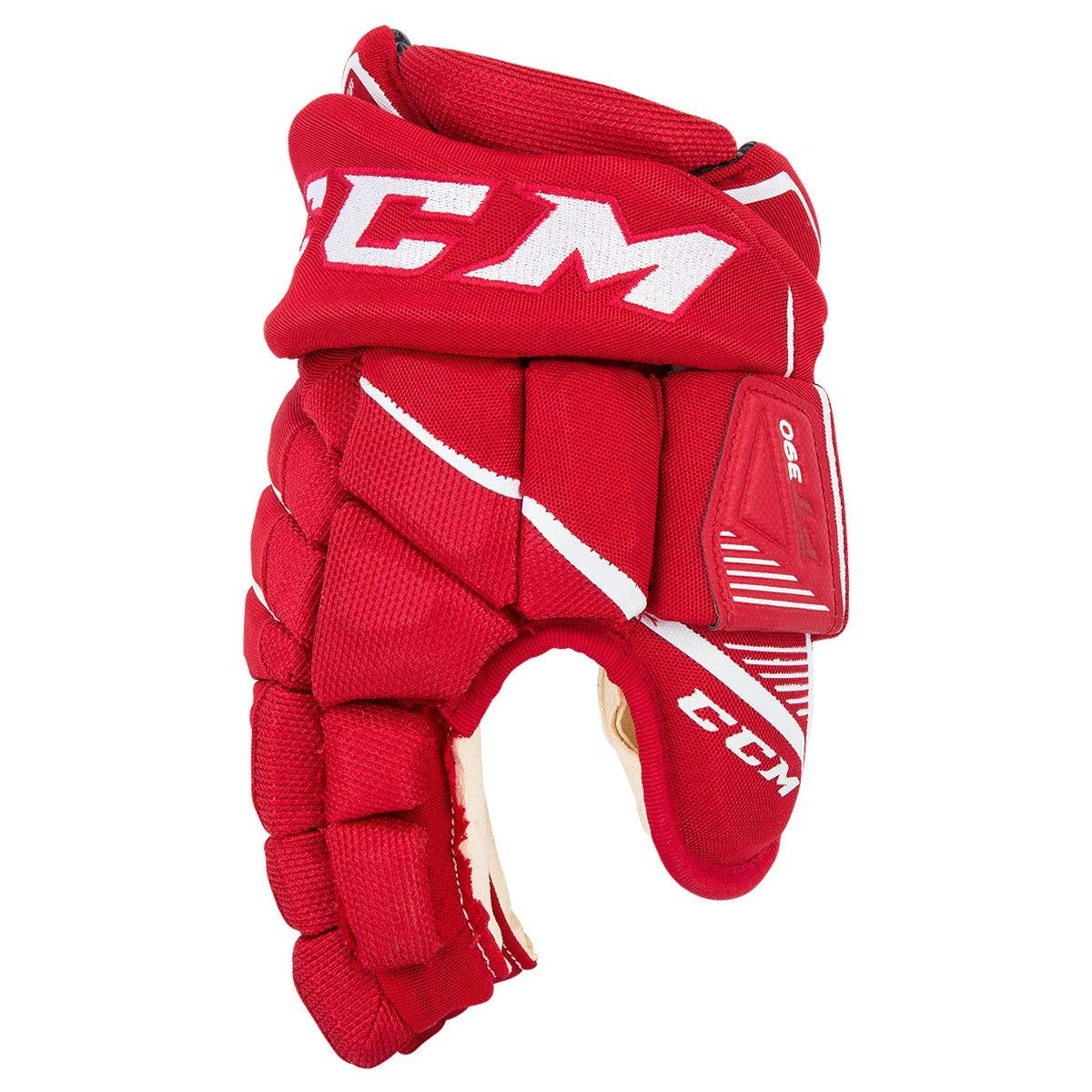 The CCM Jetspeed FT390 Junior Hockey Gloves will be constructed using Pro HD and PE foams covered by a Pro Polyester. The Polyester will give the gloves a more durable construction and allowing better breathability, while HD and PE foams will absorb impacts that can occur during gameplay. Added PE inserts on the fingers and backhand will give extra protection from bigger impacts. All these foams and inserts will sit close to the hand because of the tapered fit featured on the Jetspeed 390 and open in the cuff to allow maximum mobility.