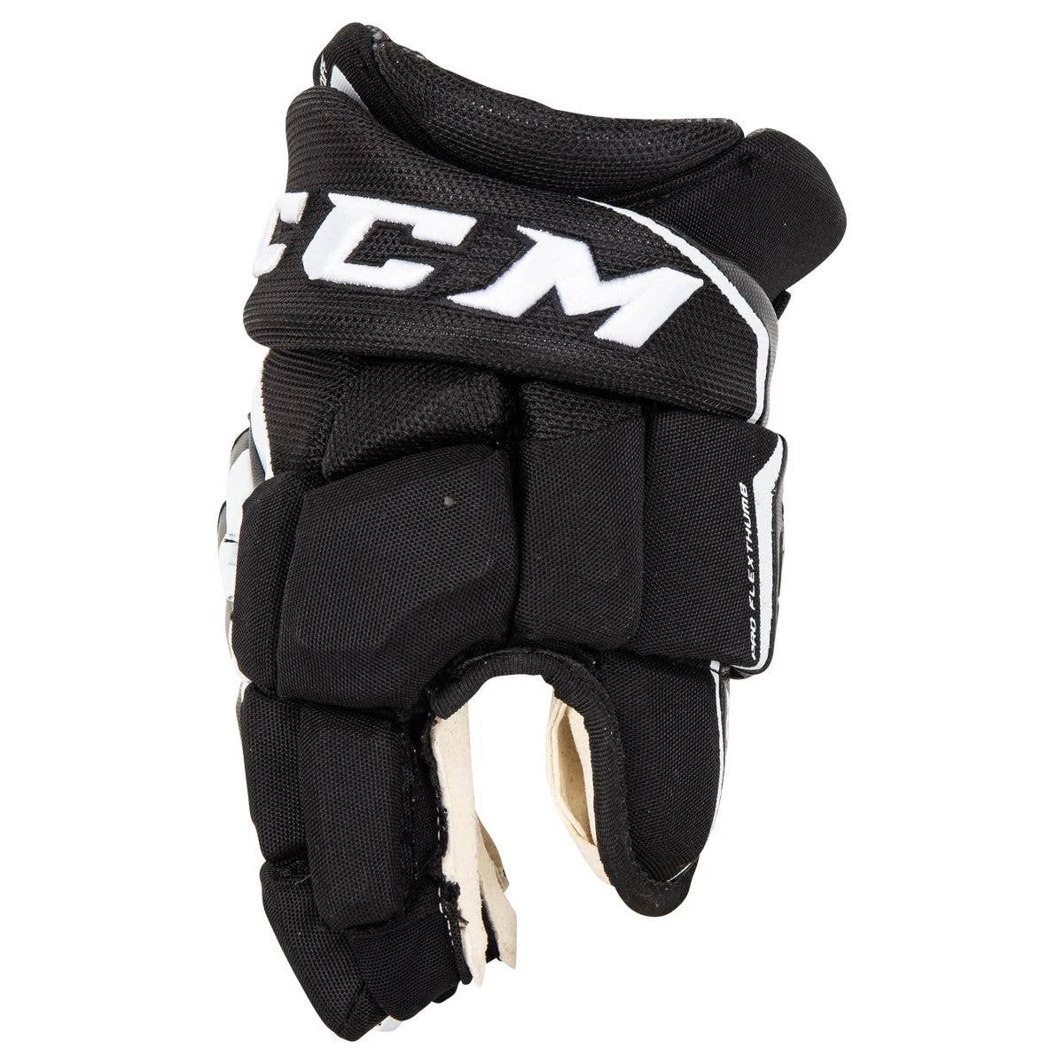 The CCM Jetspeed FT4 Pro Hockey Glove’s shell is constructed using a combination of Pro-approved polyester, synthetic leather, and lightweight protective foam. These durable gloves are designed to hold up in the high wear and high impact areas while still allowing for adequate airflow to keep your hands cool and dry during a game. The Jetspeed FT4 Pro gloves will feature an all-new back roll design that follows a perfectly anatomical shape to better fit your hands and will give you optimal mobility. The Flex Cuff has also been redesigned to be shorter and pre angled, allowing for unrestricted wrist movements, flexibility, and premium protection.